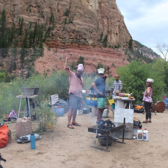 We go the extra mile to make sure you a.re comfortable in camp and the food will be nothing short of fantastic. In the field we use fresh whole foods and cook with a southwestern home style flair that is sure to suit all palates. Tents are modern dome style built to withstand the extreme weather that we sometimes see. The privy is a modern unit that looks just like the one back home. It doesn’t flush but is just as comfortable, sturdy, and comes with a better view. Don’t worry if the weather isn’t perfect. We have very large and reliable camp shelters we put up to keep you dry and you enjoy and amazing meal riverside.